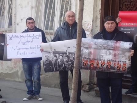 Участники акции в Тбилиси также отметили, что немецкие нацисты зачастую уничтожали евреев, поляков и другие «неугодные» им народы руками не-немецких исполнителей. В связи с этим их возмущает тот факт, что такой радикал-националист как Степан Бандера, виновный в смерти как украинцев, так и поляков, сейчас в Киеве считается национальным героем. Именно поэтому представители Института Евразии продемонстрировали собравшимся как фотоматериал освобождения Освенцима советскими солдатами, так и экспозицию уничтожения бандеровскими палачами мирных поляков. Как отметил директор Института Евразии Гулбаат Рцхиладзе, об этом «громко говорят прогрессивные поляки, помнящие свою историю».