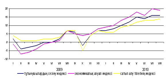 «Индекс желания покупать» свидетельствует о финансово-экономическом положении собственных домашних хозяйств респондентов и является индикатором спроса домашних хозяйств на товары длительного пользования. По URL: http://www.stat.kz/news/Pages/n2_9_09_10.aspx