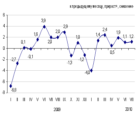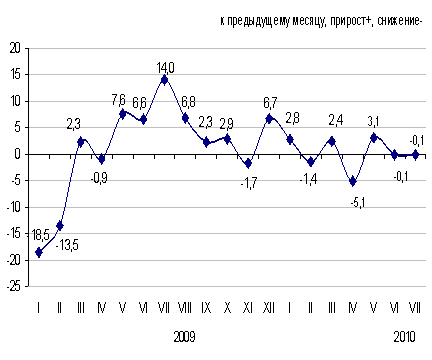 в процентах к предыдущему месяцу, прирост+, снижение –
