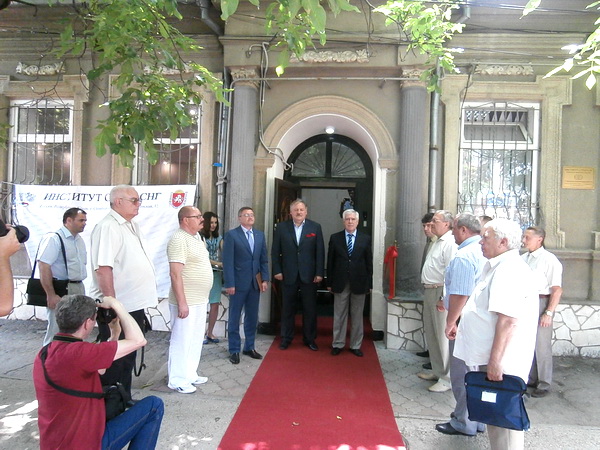 Красная дорожка у дома по адресу ул. Долгоруковская, 12, привязанный к окну баннер «Институт стран СНГ», на стене — уже привинченная скромная по размерам табличка с теми же словами… Короче, в Симферополе теперь есть Крымское представительство Института стран СНГ, который был создан в 1996 году и возглавляет который известный российский политик Константин Затулин. Вот он лично и приехал, чтобы поприсутствовать на торжественном открытии нового центра общественной мысли. А возглавлять крымское представительство будет также хорошо известный в Крыму политик, общественный деятель и автор «Крымского Эха» Олег Родивилов.
