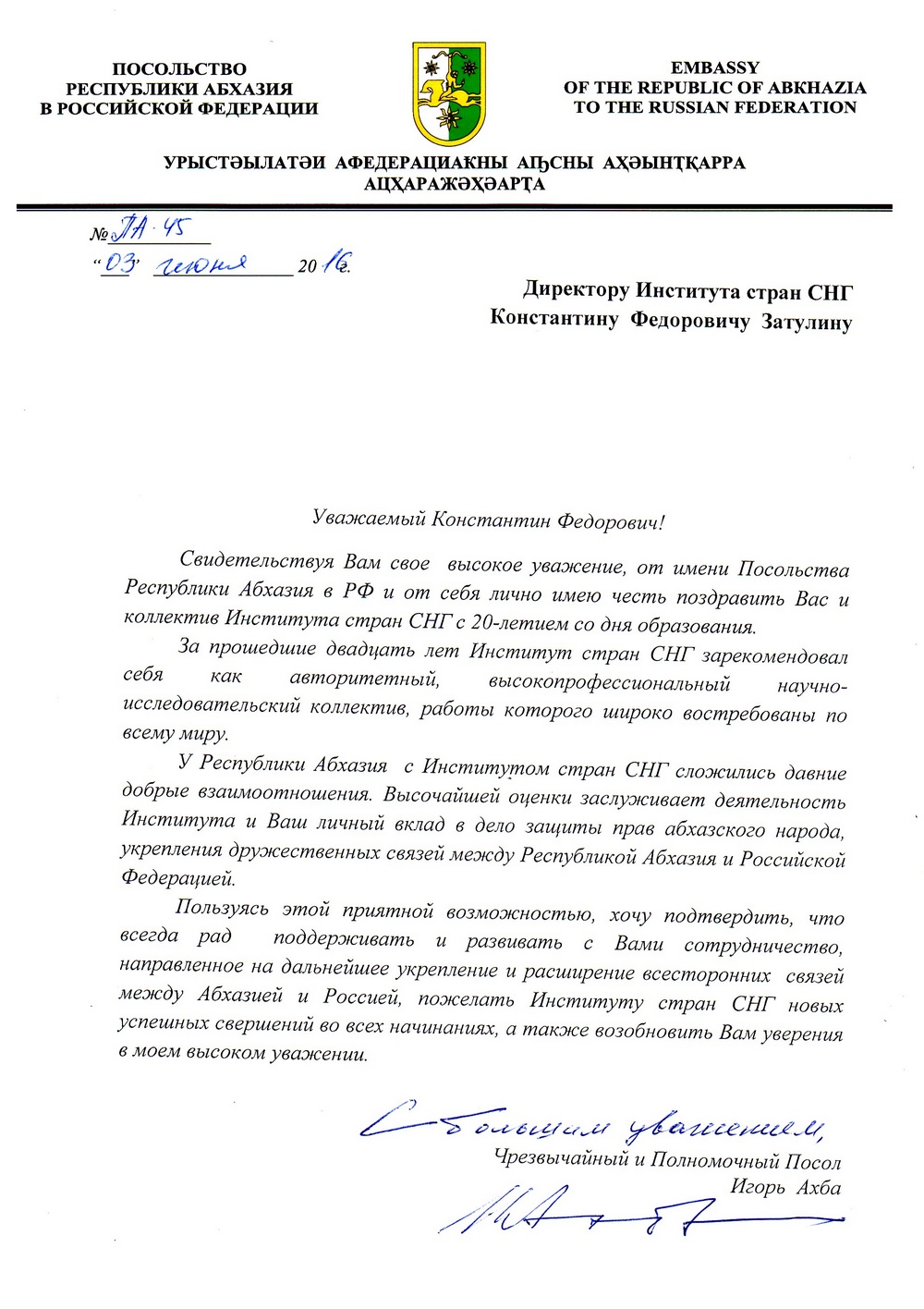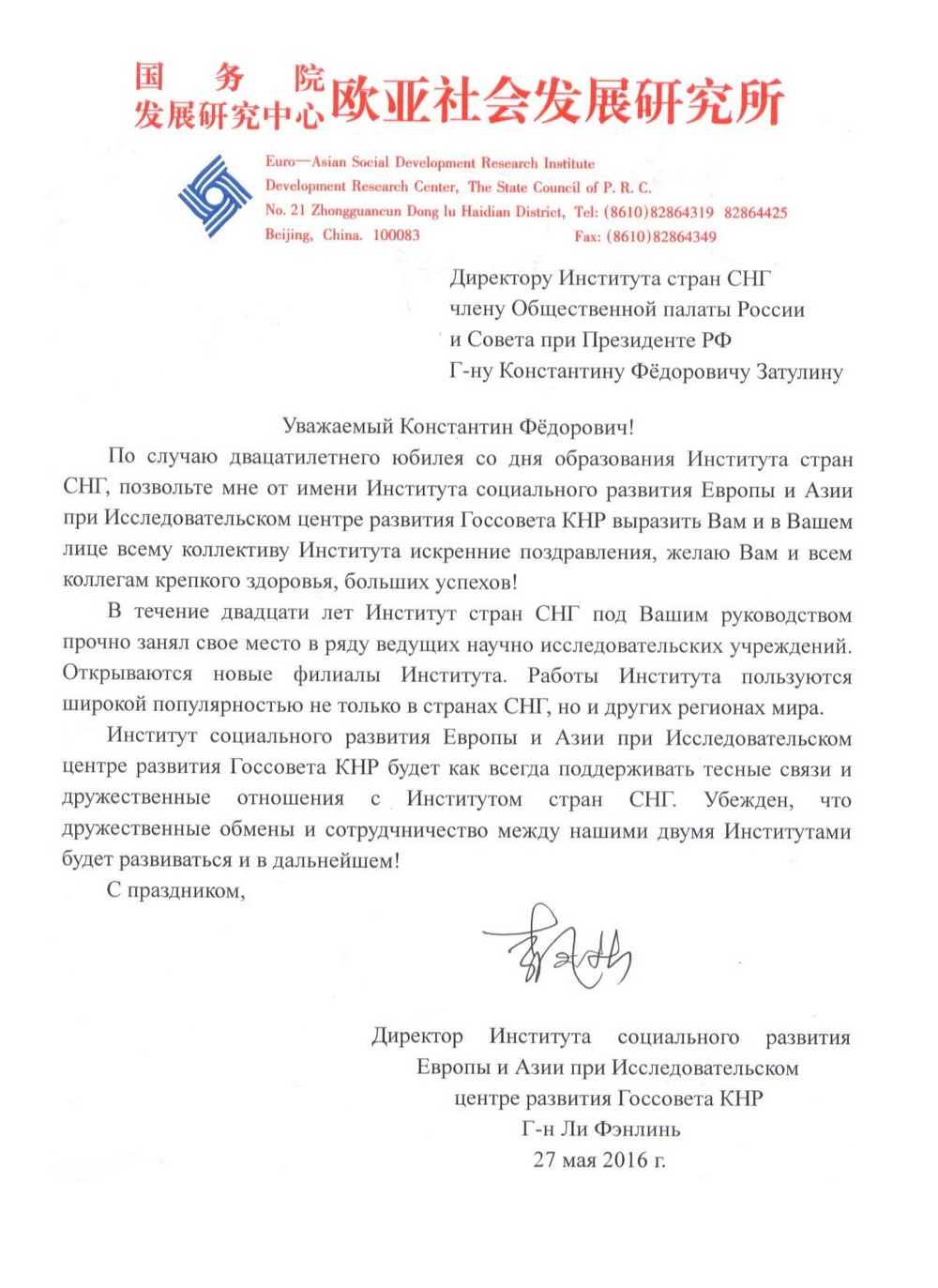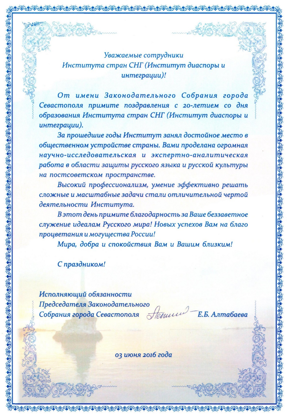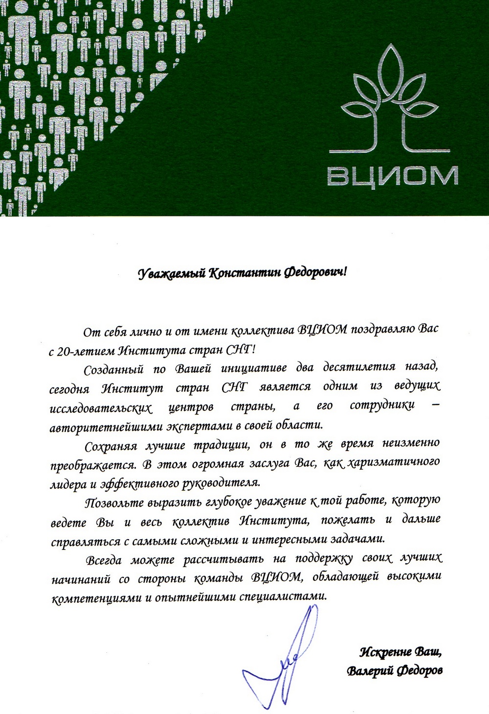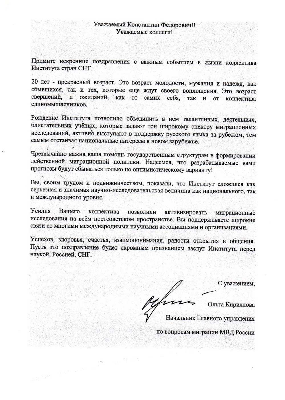 Институт стран СНГ принимает поздравления в связи с 20-летием со дня образования
