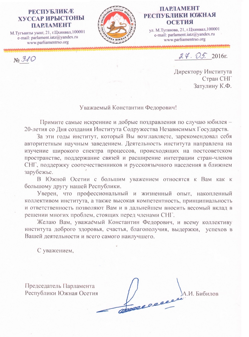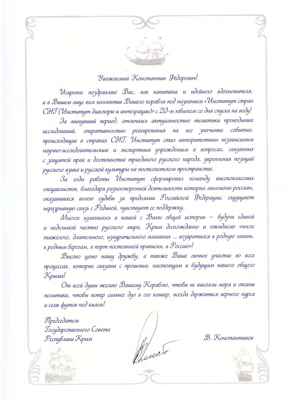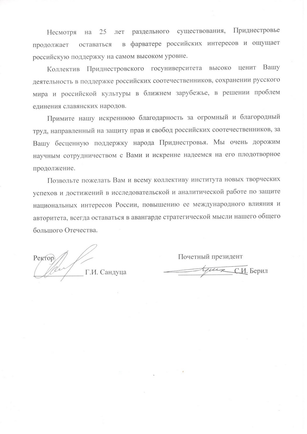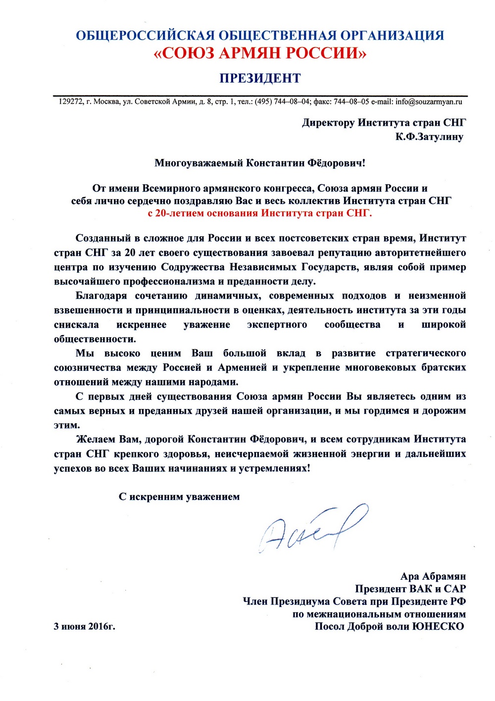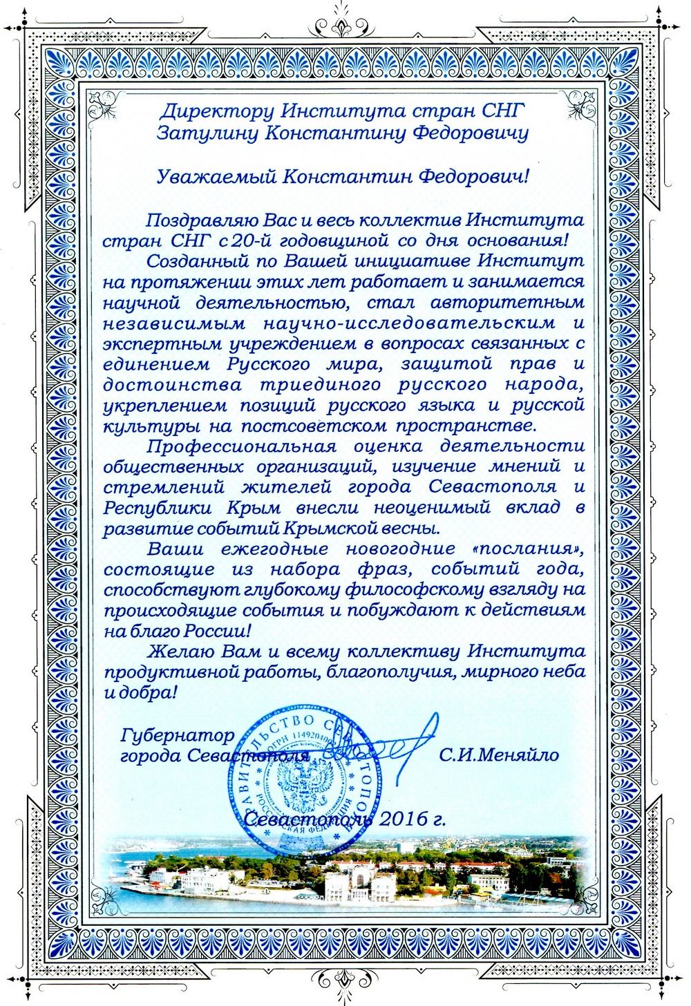 Институт стран СНГ принимает поздравления в связи с 20-летием со дня образования