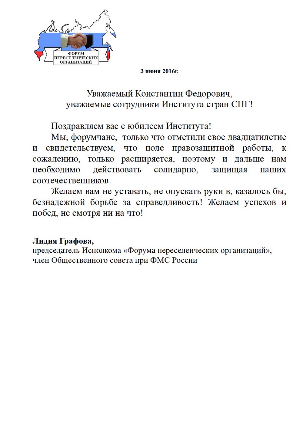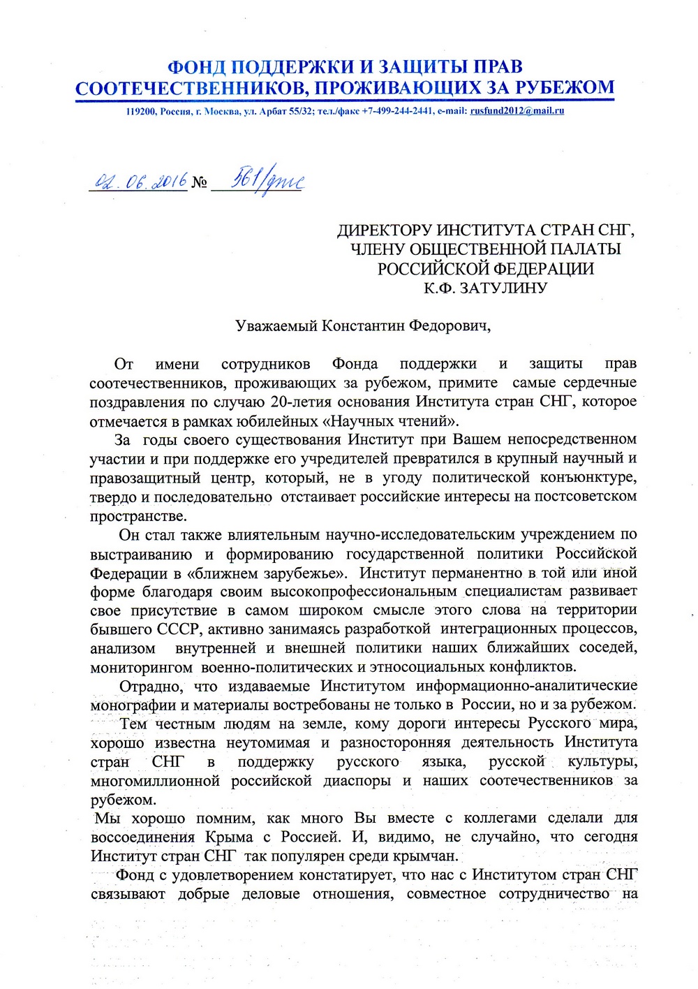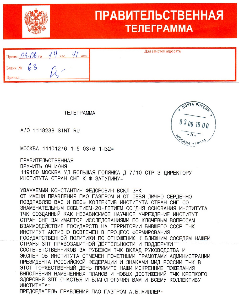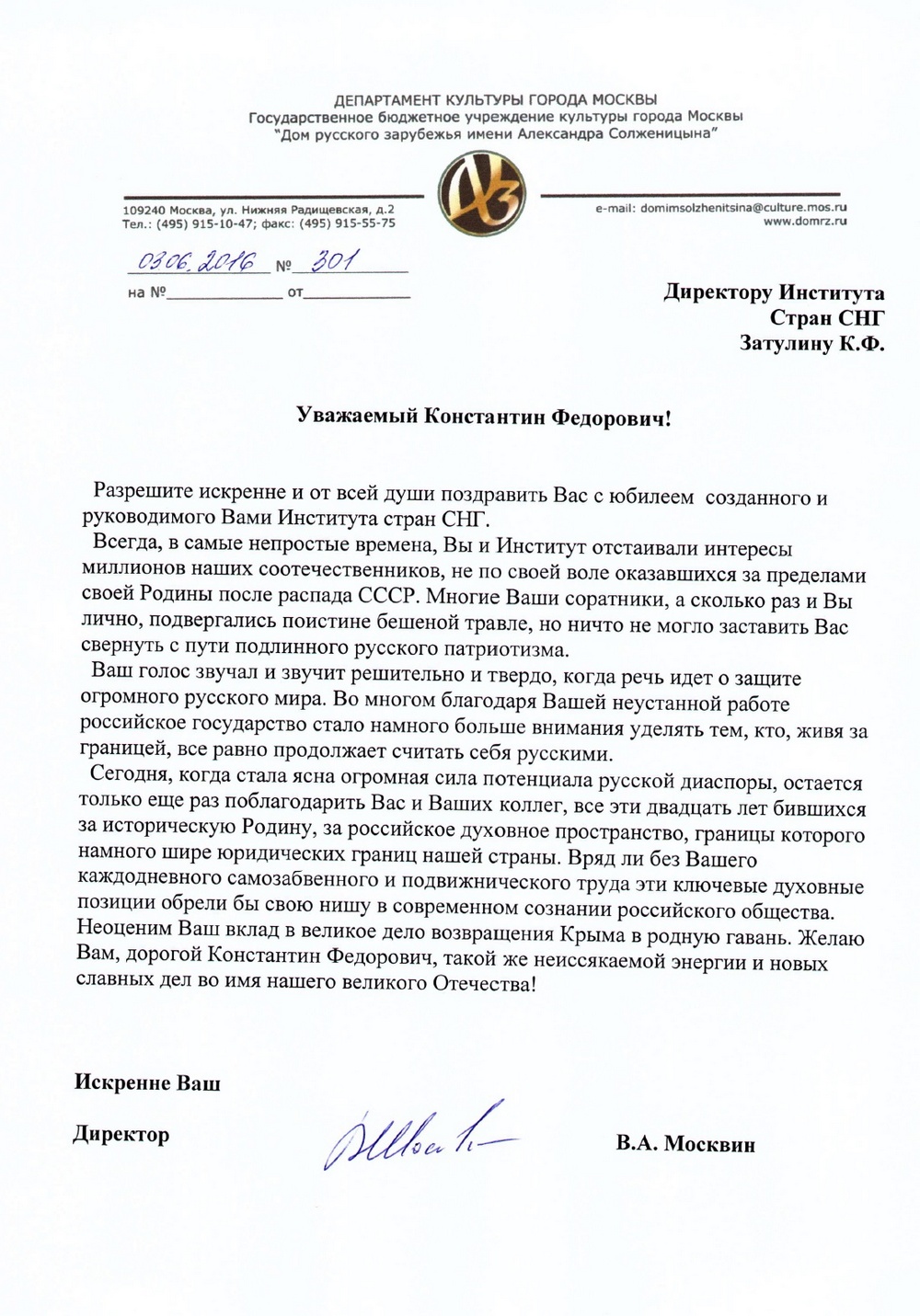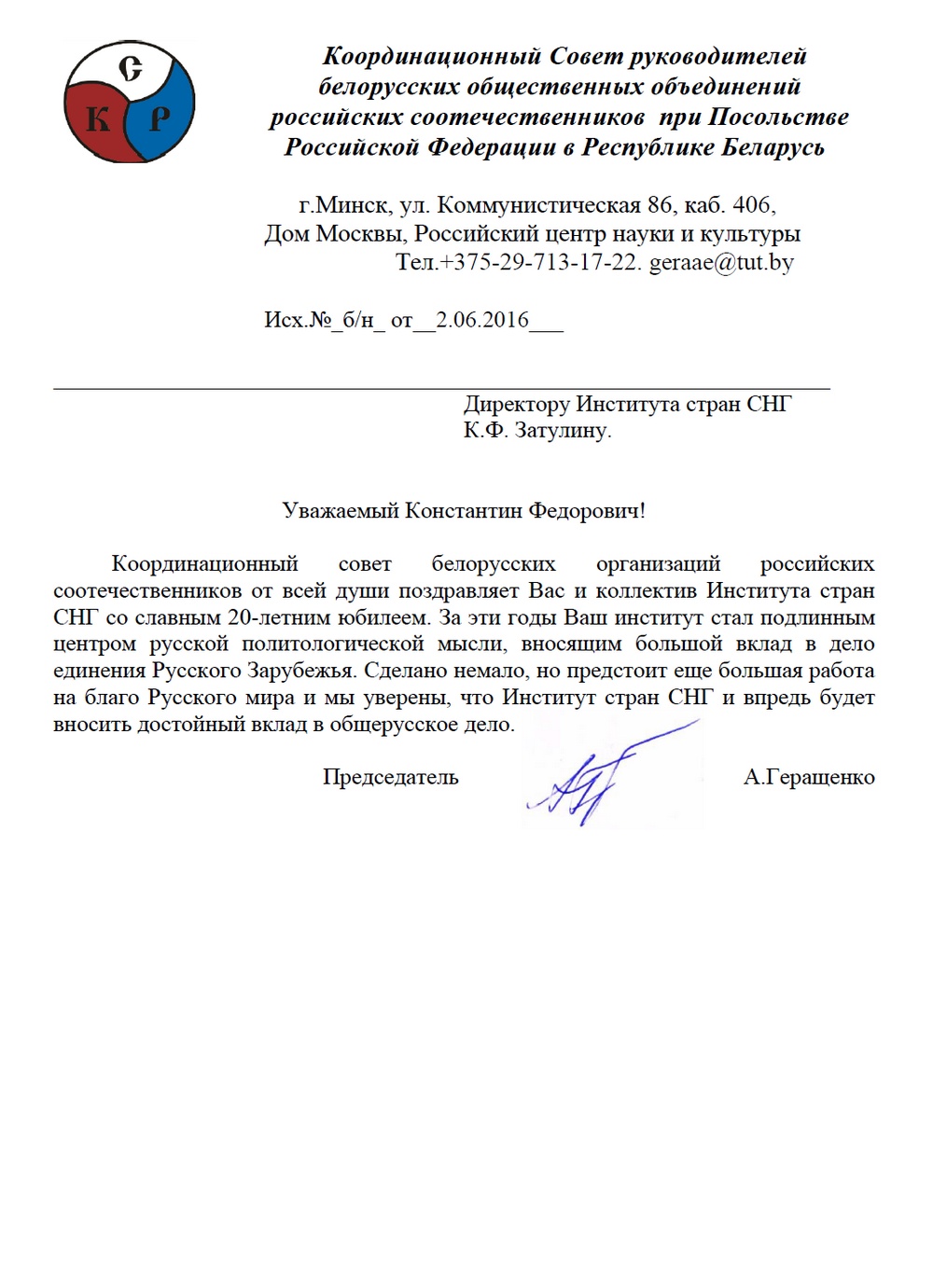 Институт стран СНГ принимает поздравления в связи с 20-летием со дня образования
