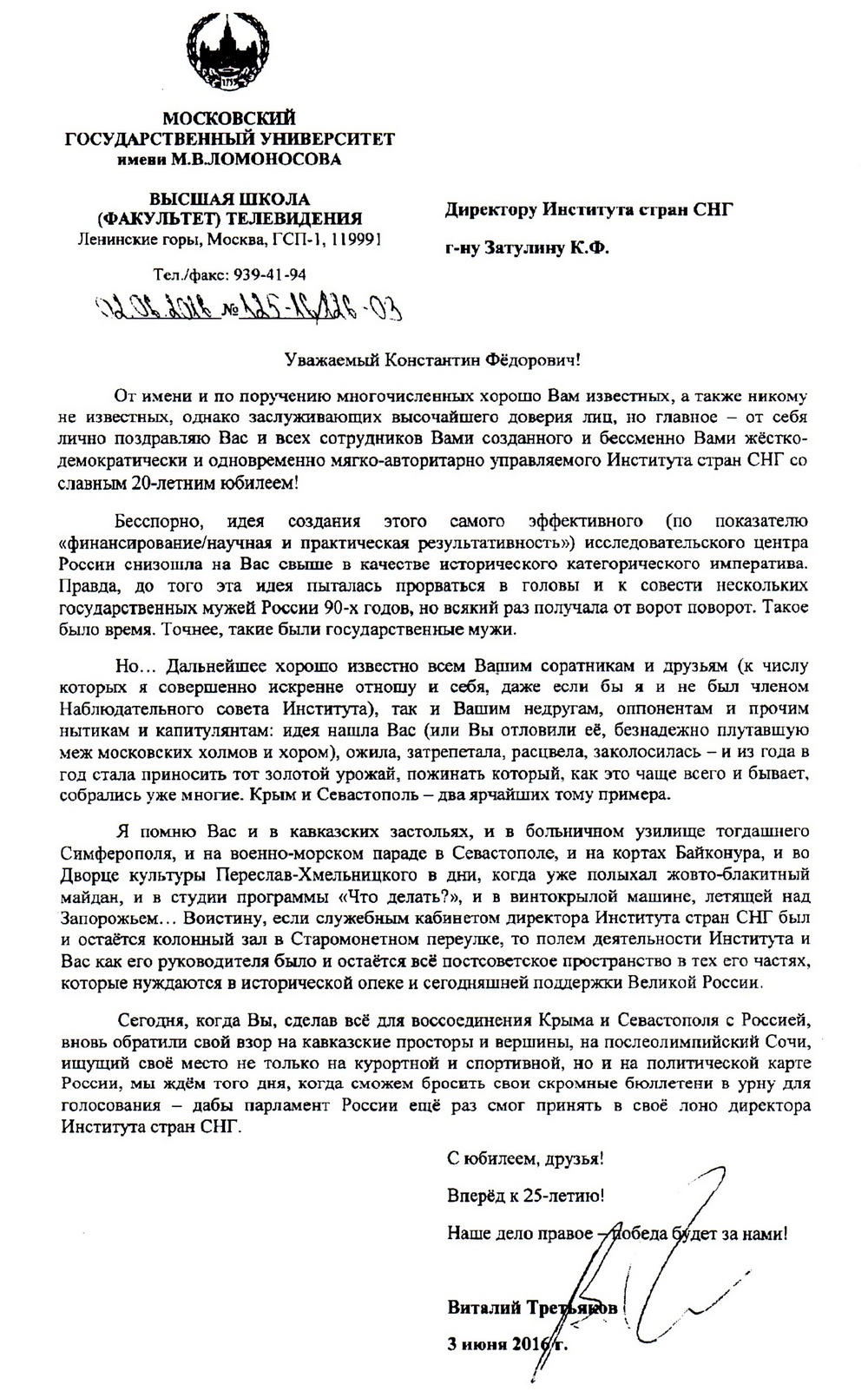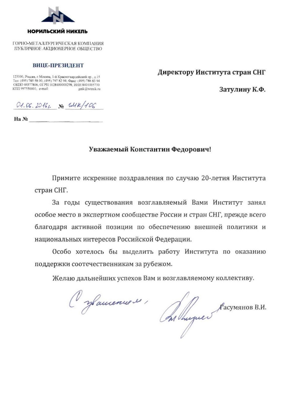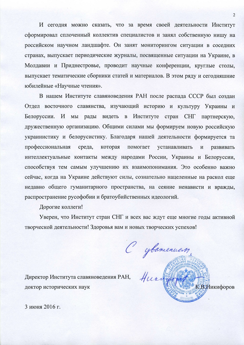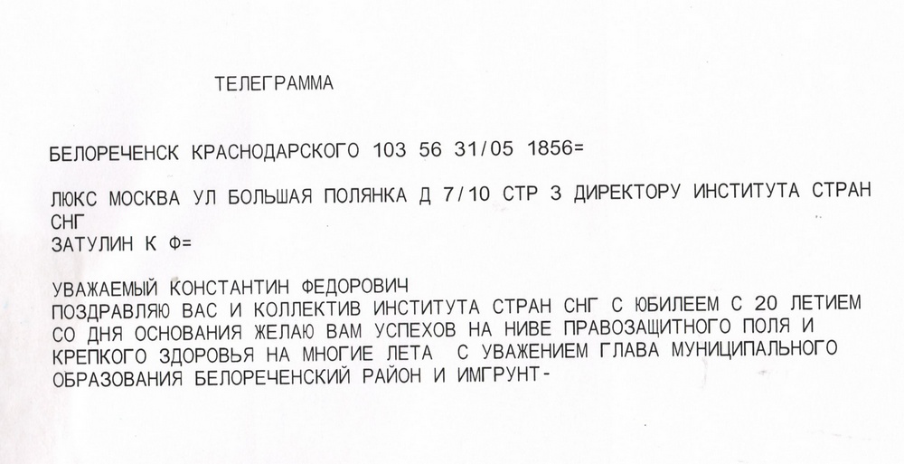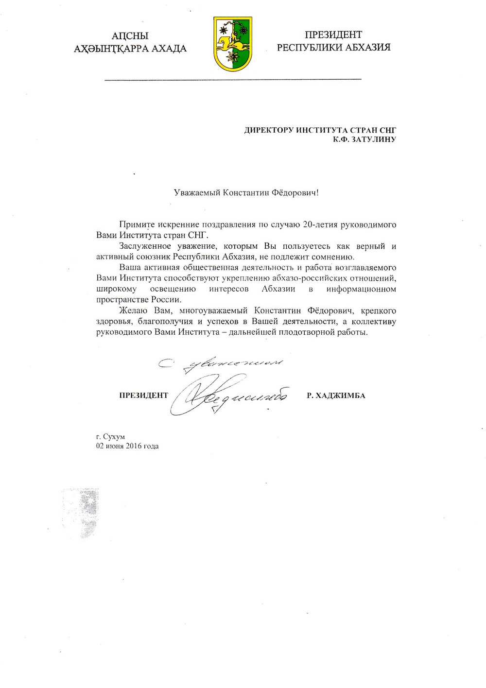 Институт стран СНГ принимает поздравления в связи с 20-летием со дня образования