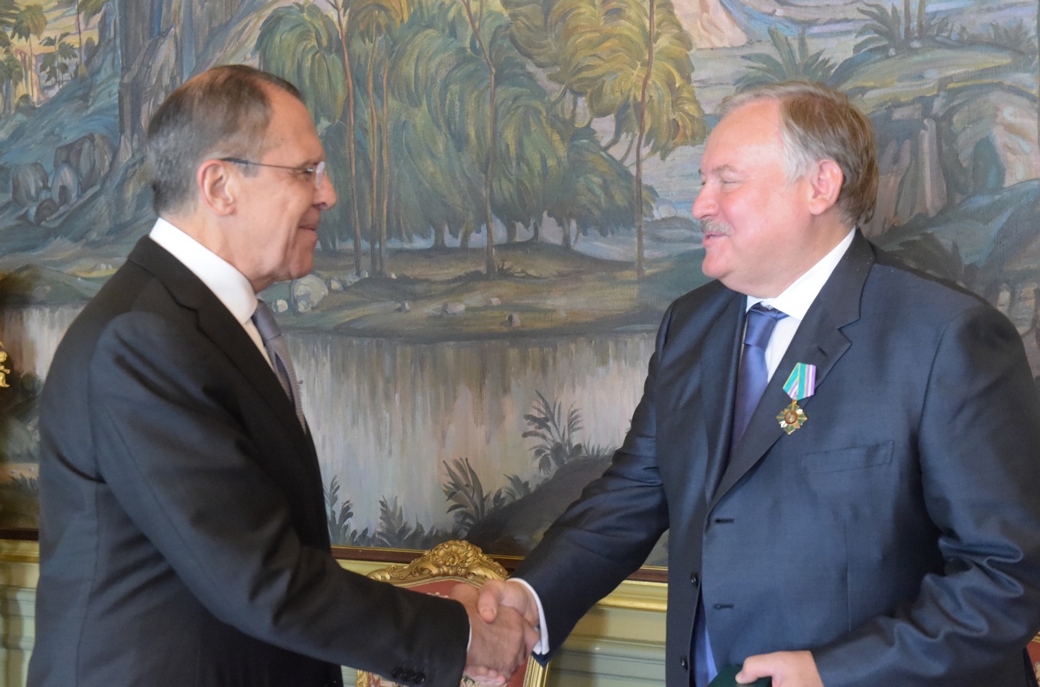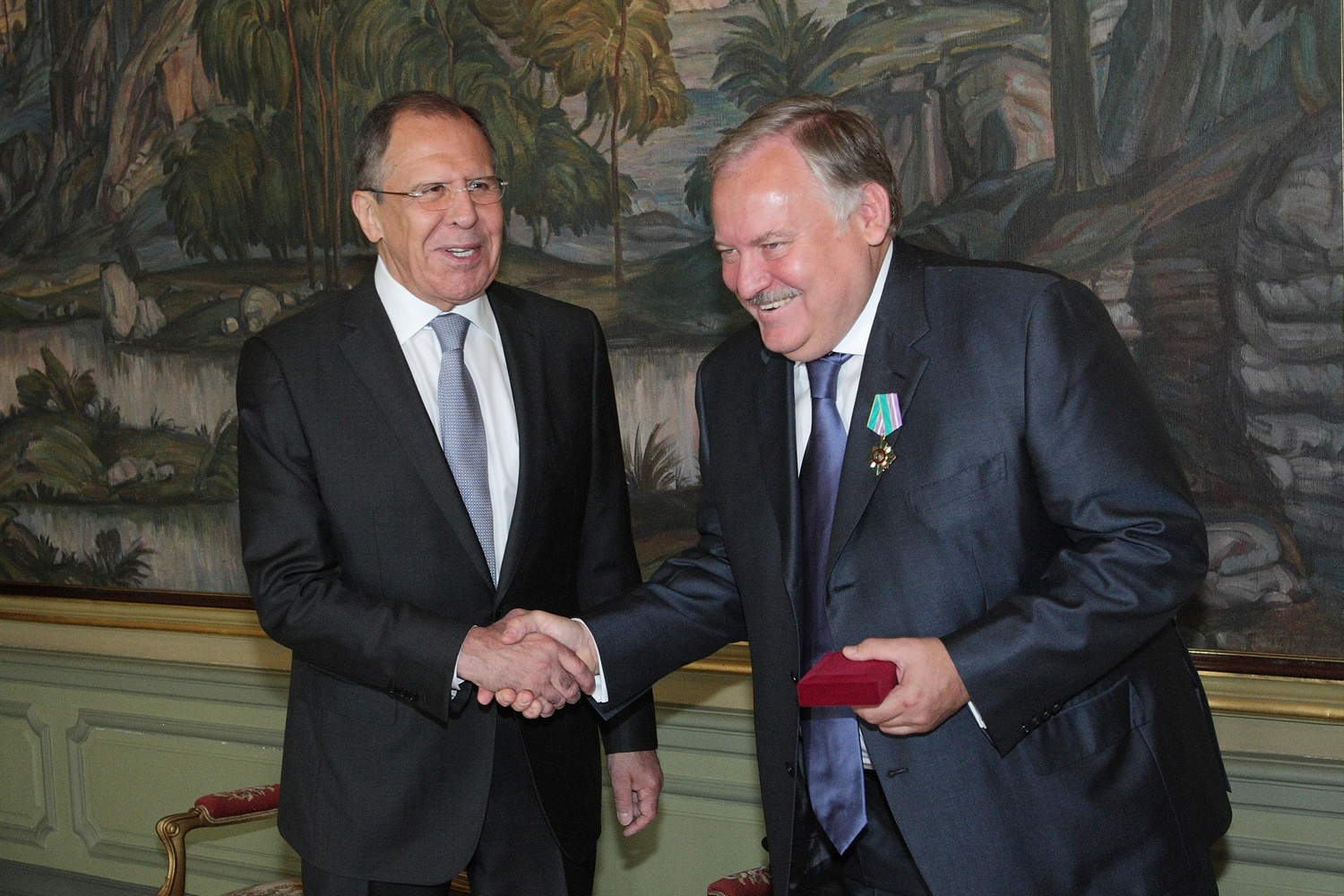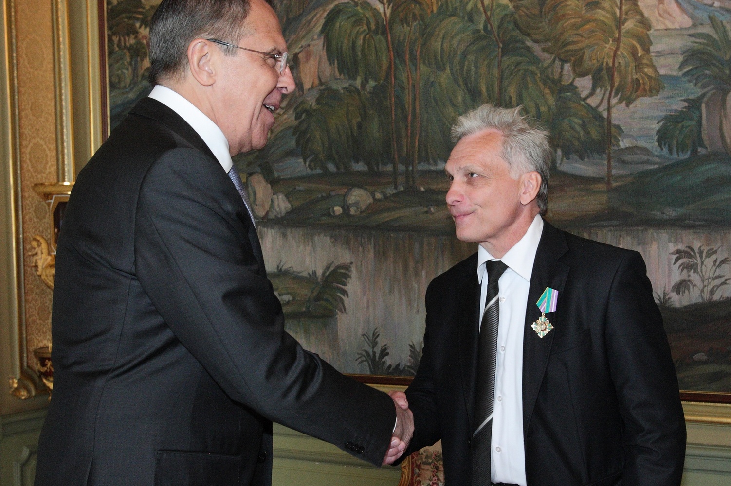 Сергей ЛАВРОВ: «Мы отмечаем и награждаем в честь 20-летия Института стран СНГ (Института диаспоры и интеграции), у истоков которого стоял Константин Федорович и его соратники, которые вносят очень важный вклад с самых первых дней, когда еще не всем приходило в голову, что нужно этим заниматься. Это было такое провидческое решение, и мы его активно поддерживаем. И, тем более, ощущаем пользу от того, что вы сейчас делаете в целом ряде стран СНГ, особенно включая Украину и Приднестровье, и в немалой степени тоже Киргизию, Армению… Надо очень внимательно наблюдать за происходящим.