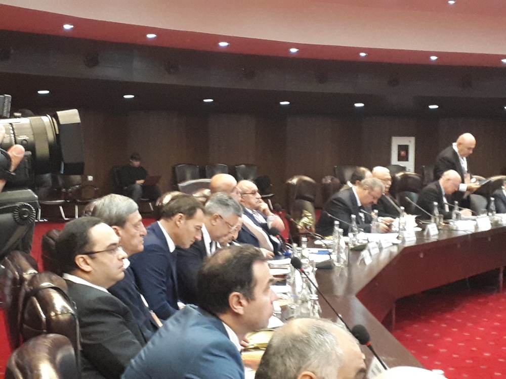 В конференц-зале Спортивно-концертного комплекса им. Карена Демирчяна собрались известные политики, дипломаты, ученые, журналисты и общественники Армении и России.