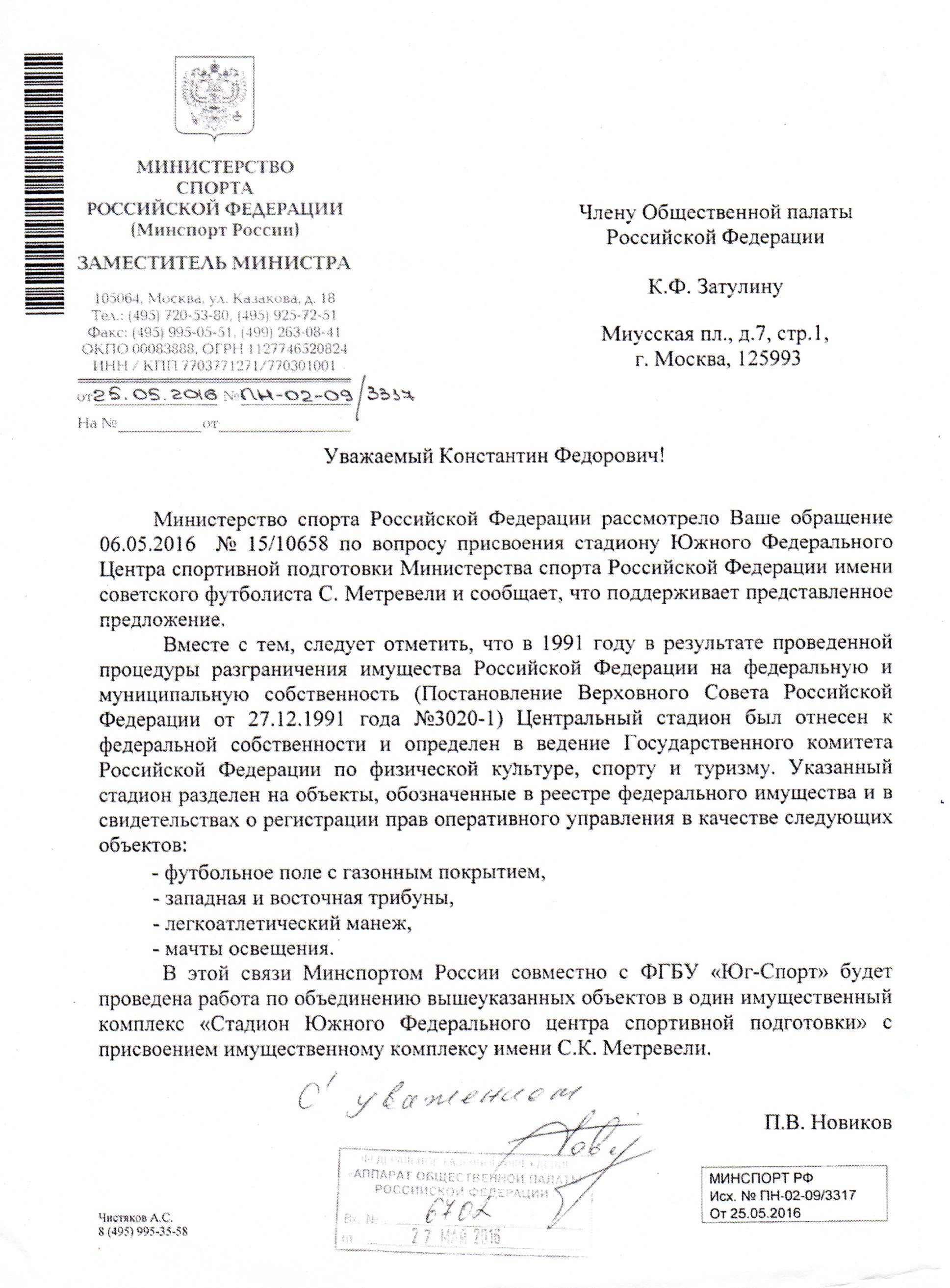 На поле — команды «Коммунстрой» и сборная микрорайона «Завокзальный». В таком составе ветераны часто играют в футбол. Но это случай особый. Юбилей их кумира Славы Метревели, чемпиона Европы в составе сборной команды по футболу СССР в 1960 году. Бюст спортсмена установлен у автобусной остановки «Стадион». Там и собрались активисты и родственники Метревели. Именно здесь и стало известно, что благодаря поддержке члена Общественной палаты России Константина Затулина стадион теперь официально будет носить имя прославленного футболиста. Вопрос решен в Минспорте.