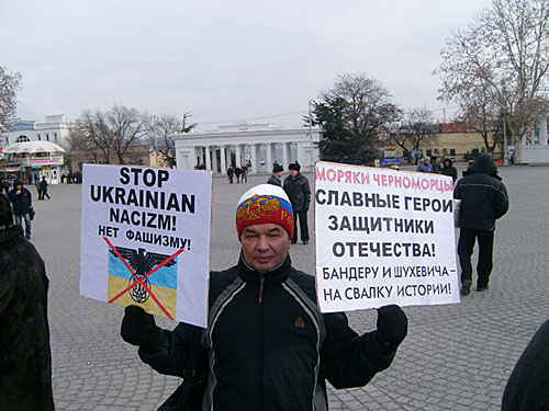 Участники многолюдного митинга, состоявшегося в субботу, 21 февраля, на площади Нахимова в Севастополе, осудили политику властей Украины, стремящихся втянуть страну в НАТО и реабилитировать нацистских преступников.